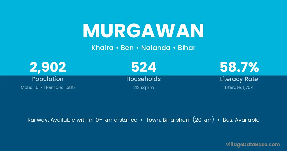 Biharsharif (20 km) is the nearest town to Murgawan village for major economic activities and is located approximately 20 km away.