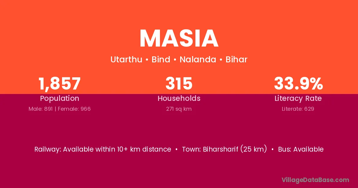 Biharsharif (25 km) is the nearest town to Masia village for major economic activities and is located approximately 25 km away.