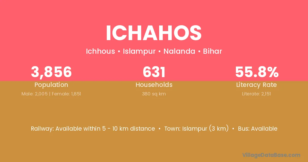 Islampur (3 km) is the nearest town to Ichahos village for major economic activities and is located approximately 3 km away.