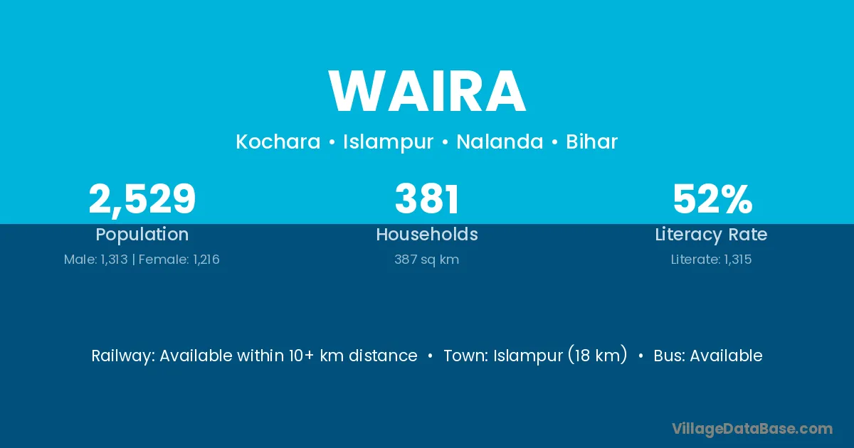 Islampur (18 km) is the nearest town to Waira village for major economic activities and is located approximately 18 km away.