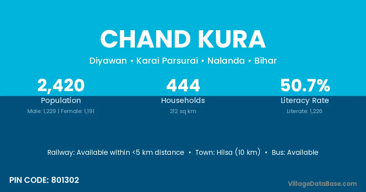 Hilsa (10 km) is the nearest town to Chand Kura village for major economic activities and is located approximately 10 km away.