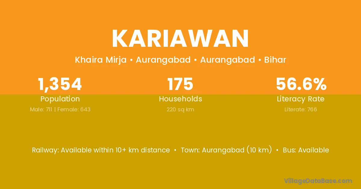 Hilsa (13 km) is the nearest town to Kariawan village for major economic activities and is located approximately 13 km away.