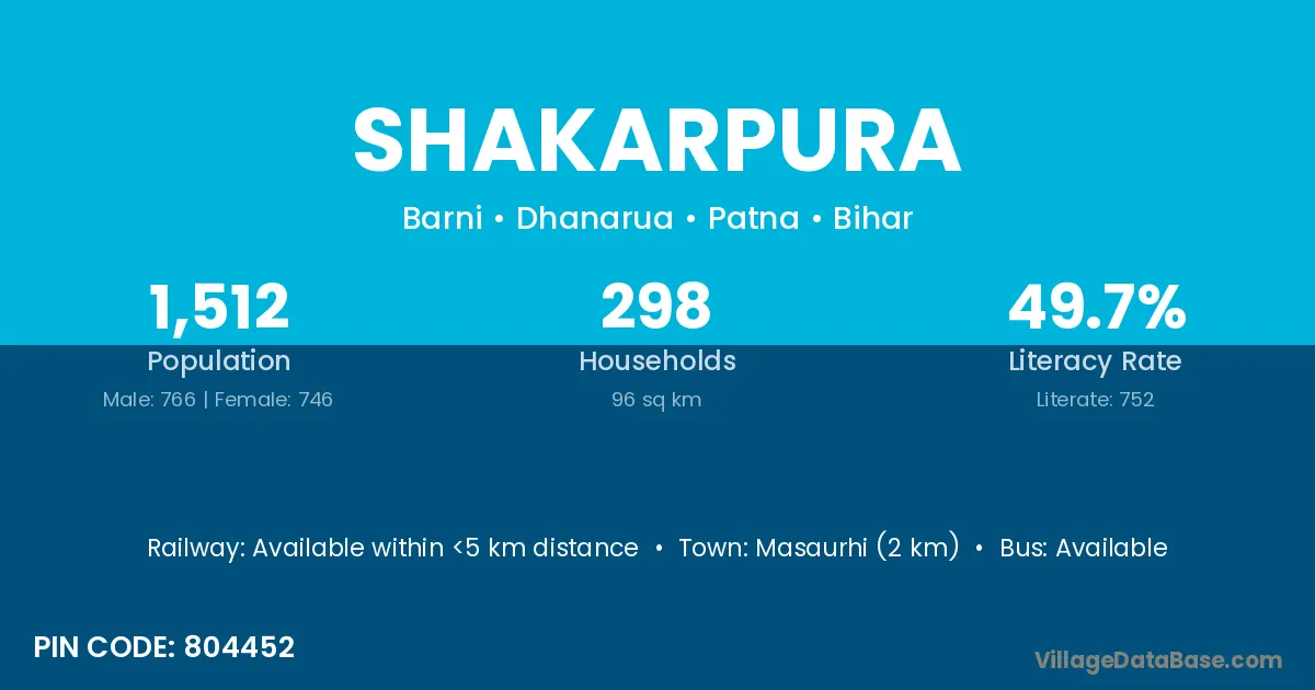 Nawada (12 km) is the nearest town to Shakarpura village for major economic activities and is located approximately 12 km away.