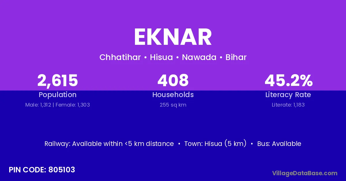 According to Census 2011 information, the village code of Eknar village is 805103.
