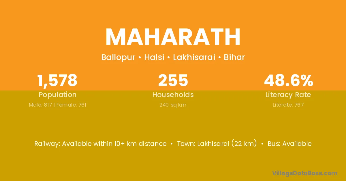 Warisaliganj (12 km) is the nearest town to Maharath village for major economic activities and is located approximately 12 km away.