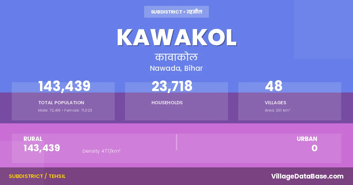 Kawakol is a town and Subdivision in the Nawada district of the Bihar. In India, a Subdivision is a subdivision of a district responsible for the administration and revenue collection of a specific area within the district. Subdivisions play a crucial role in the local governance structure, contributing significantly to the development and administration of their communities.