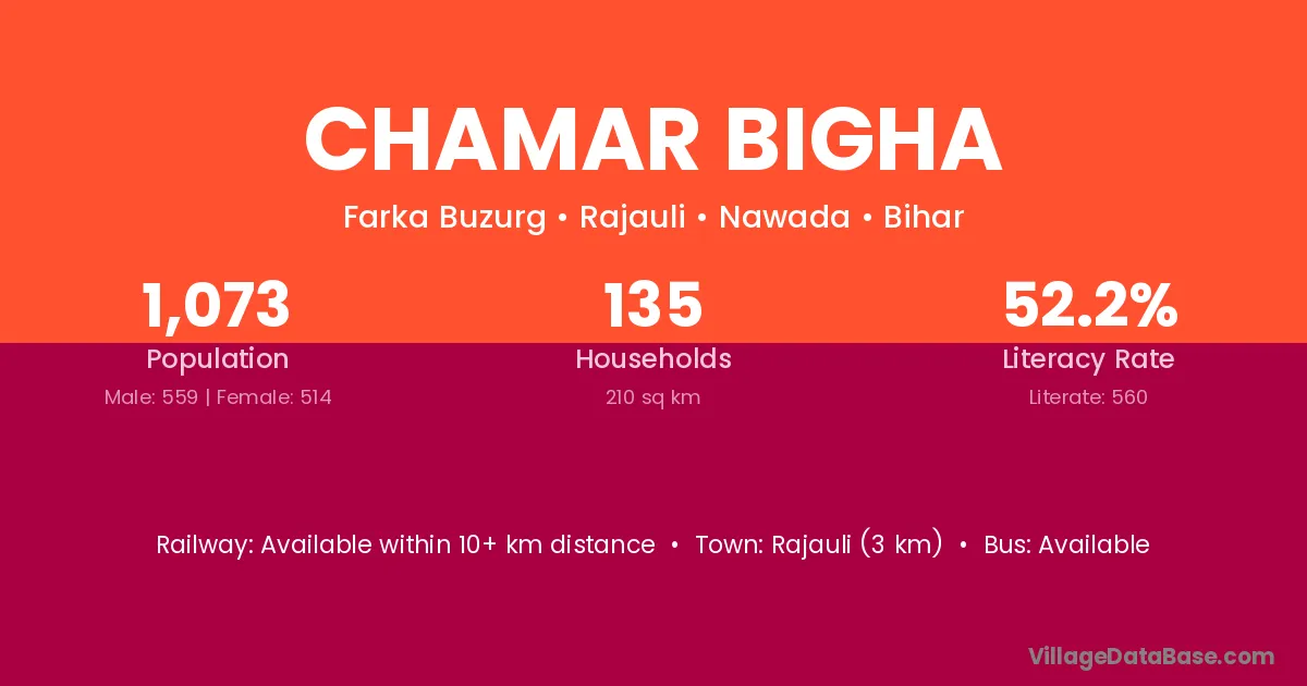 Chamar Bigha village has a total population of 1,073 people, of which 559 are males and 514 are females.