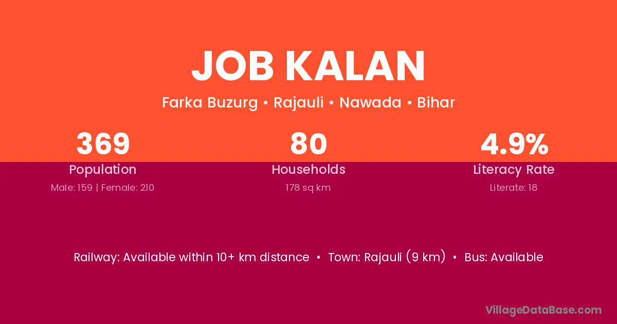 Rajauli (9 km) is the nearest town to Job Kalan village for major economic activities and is located approximately 9 km away.