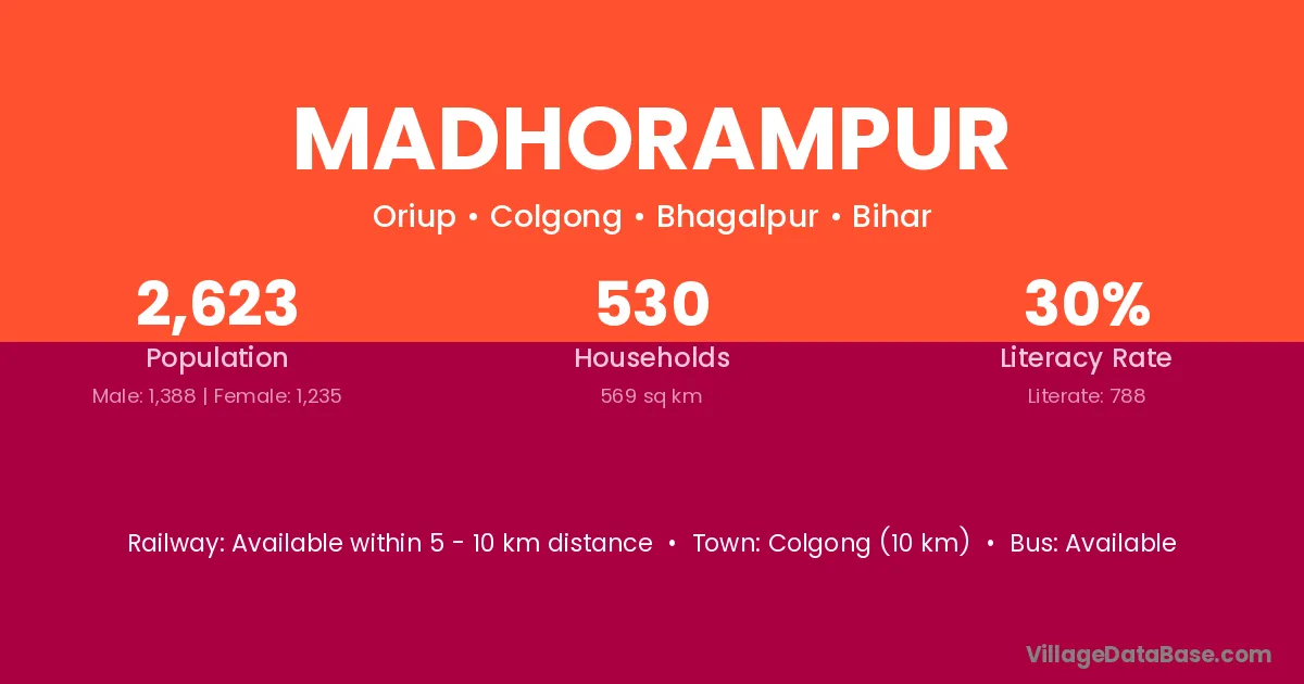 Rajauli (10 km) is the nearest town to Madhorampur village for major economic activities and is located approximately 10 km away.