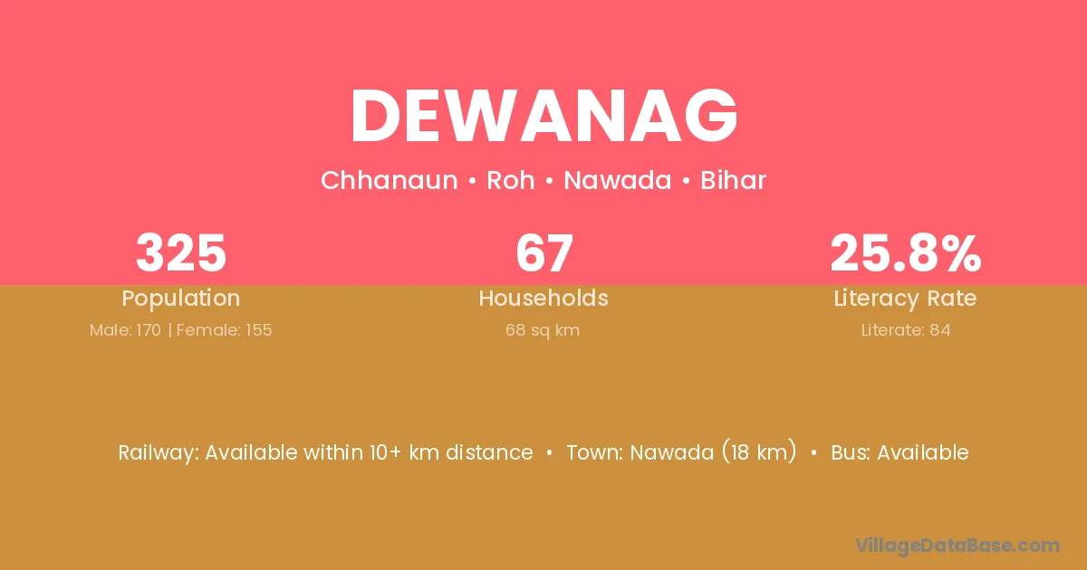 Nawada (18 km) is the nearest town to Dewanag village for major economic activities and is located approximately 18 km away.
