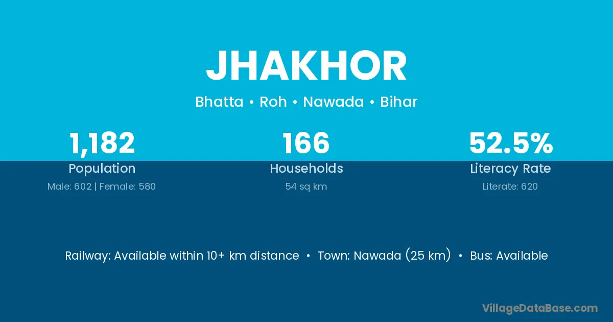 Nawada (25 km) is the nearest town to Jhakhor village for major economic activities and is located approximately 25 km away.