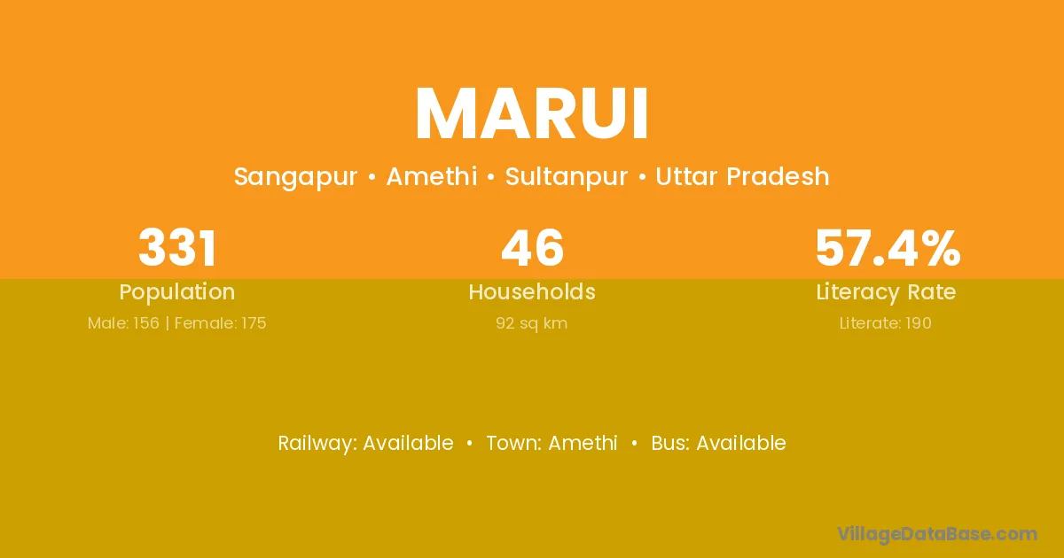 The literacy rate of Marui village is 52.99%. Male literacy stands at 59.19% and female literacy at 46.47%.
