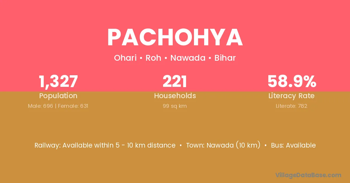 Nawada (10 km) is the nearest town to Pachohya village for major economic activities and is located approximately 10 km away.
