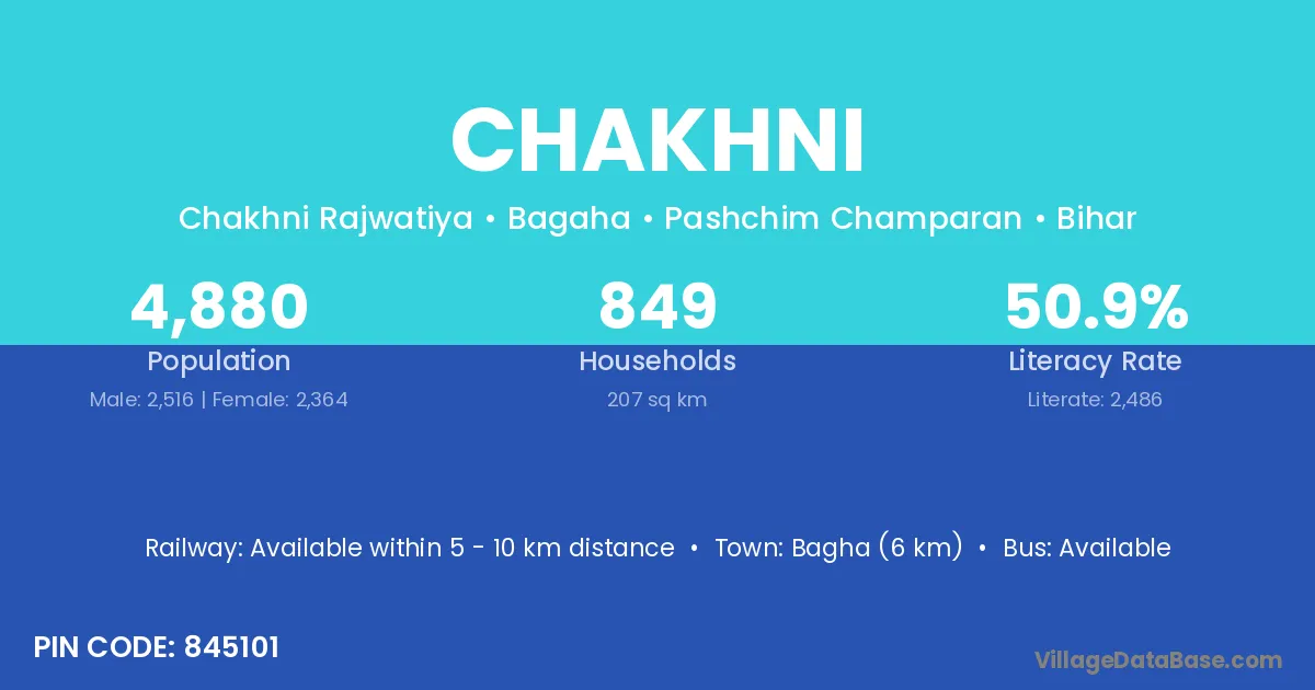 According to Census 2011 information, the village code of Chakhni village is 845101.