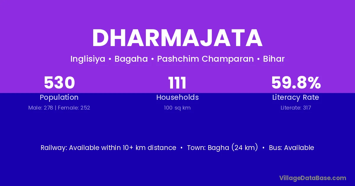 Bagha (24 km) is the nearest town to Dharmajata village for major economic activities and is located approximately 24 km away.