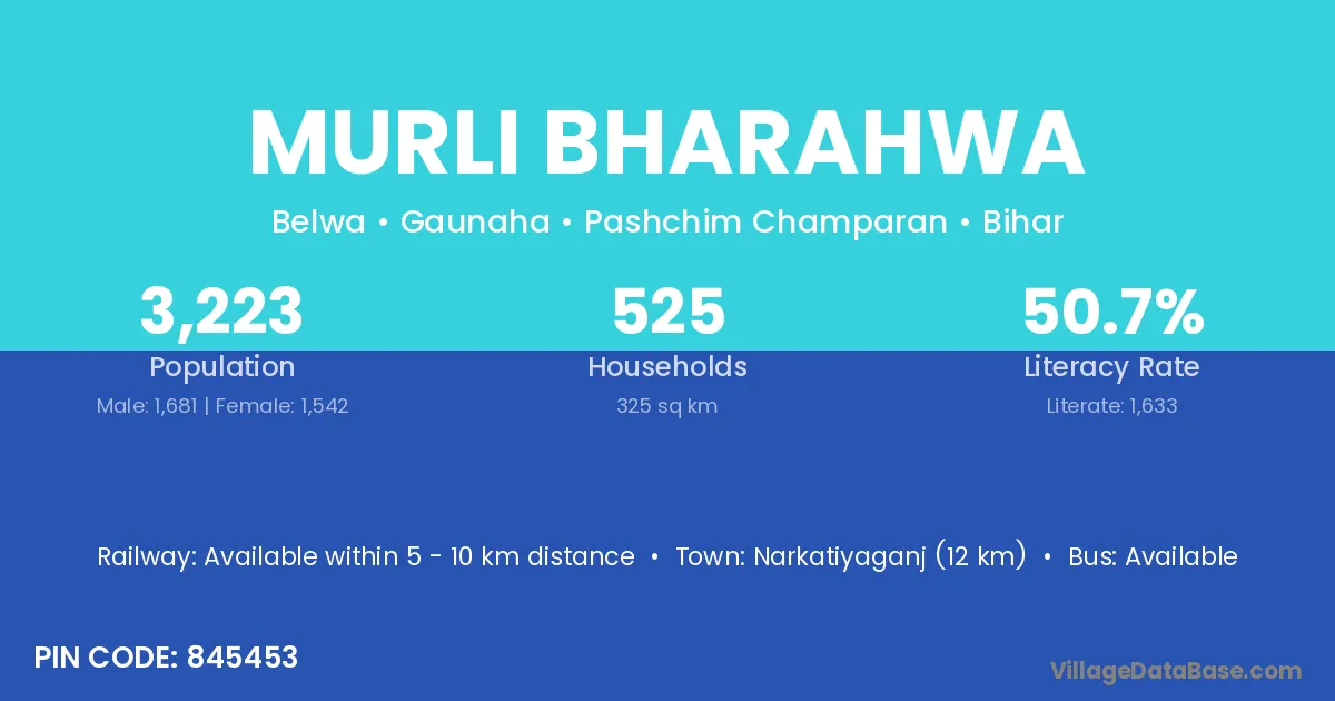Murli Bharahwa village has a total population of 3,223 people, of which 1,681 are males and 1,542 are females.