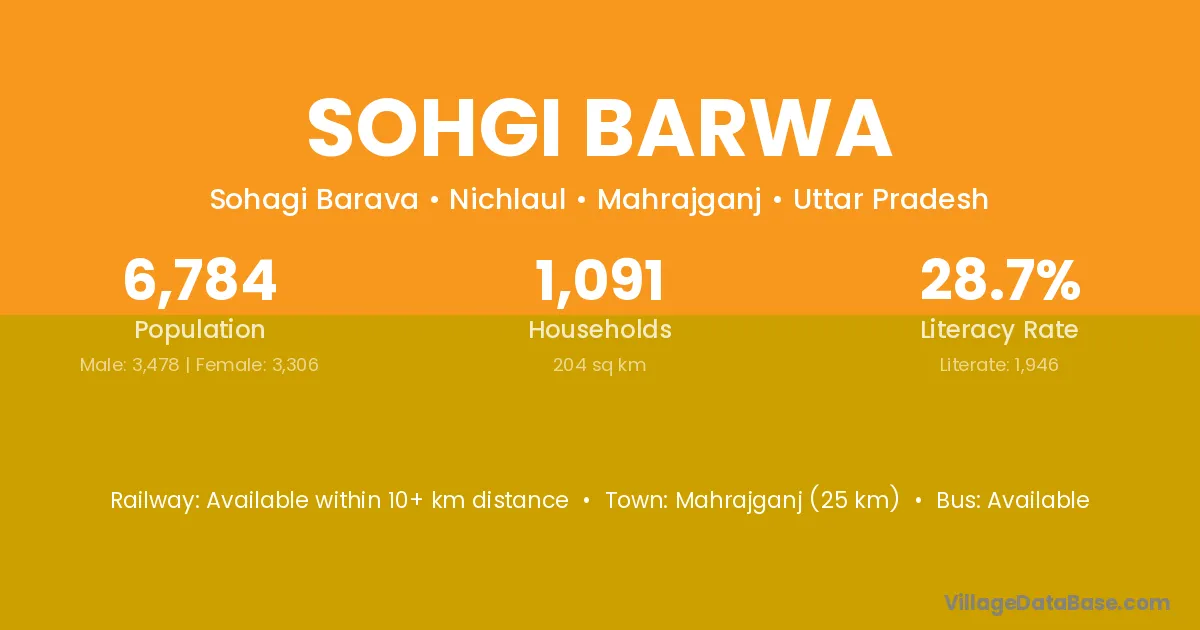 Bagha (80 km) is the nearest town to Sohgi Barwa village for major economic activities and is located approximately 80 km away.