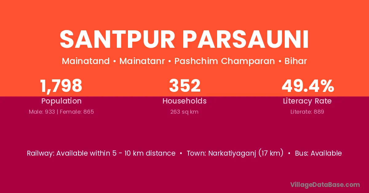 Santpur Parsauni village has a total population of 1,798 people, of which 933 are males and 865 are females.