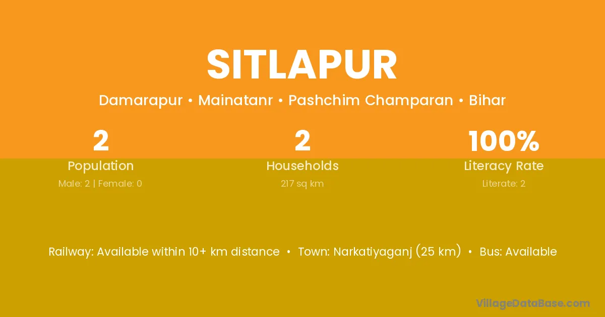 Sitlapur village has a total population of 2 people, of which 2 are males and 0 are females.