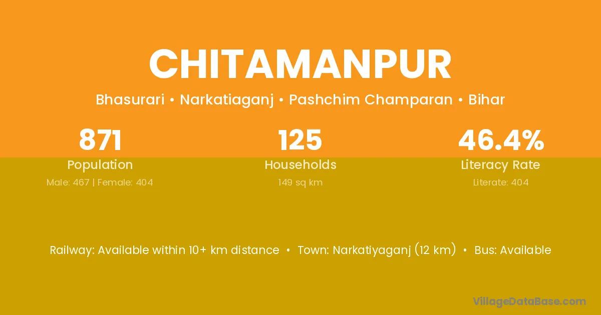 Chitamanpur village has a total population of 871 people, of which 467 are males and 404 are females.