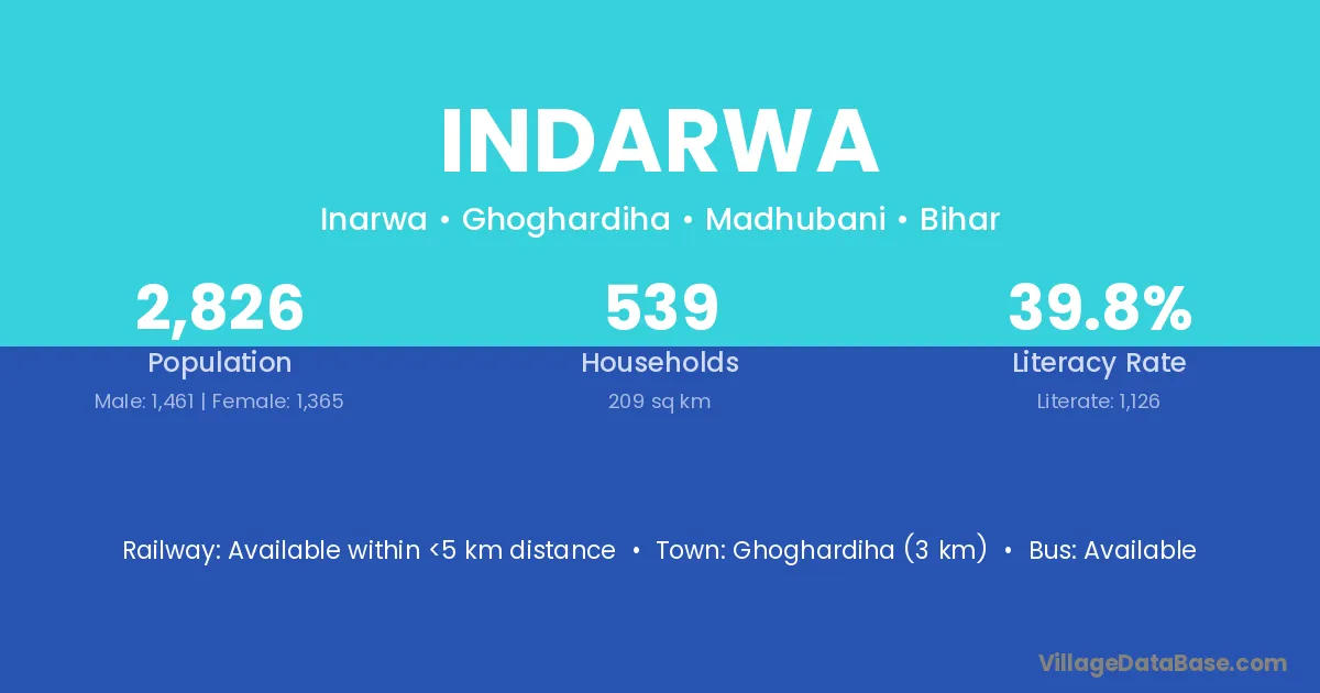 Narkatiyaganj (10 km) is the nearest town to Indarwa village for major economic activities and is located approximately 10 km away.