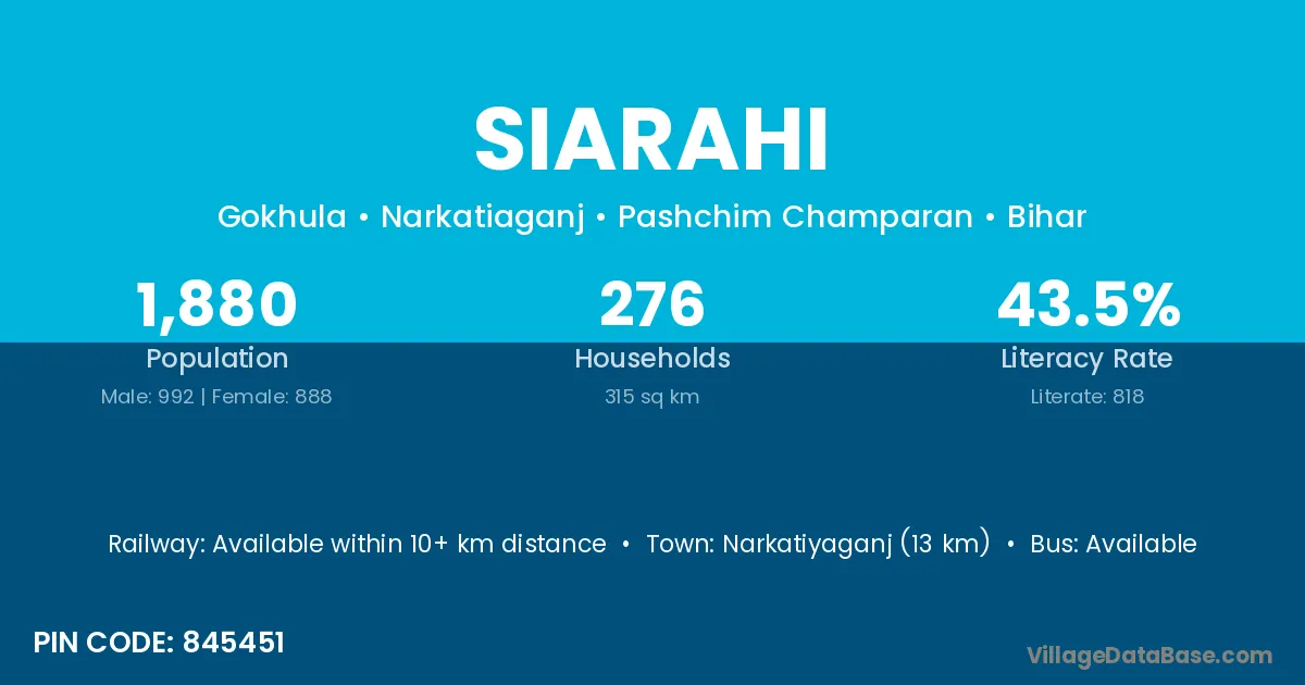 According to Census 2011 information, the village code of Siarahi village is 845451.