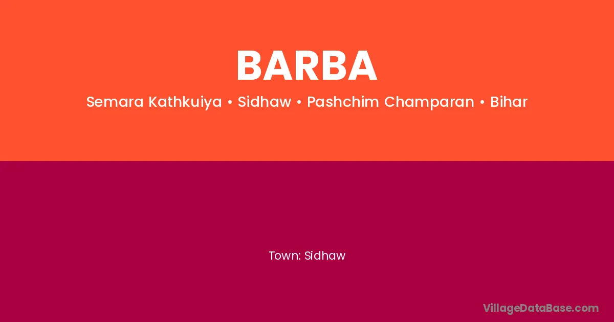 Barba village is located in the Sidhaw Subdivision of the Pashchim Champaran district in Bihar .