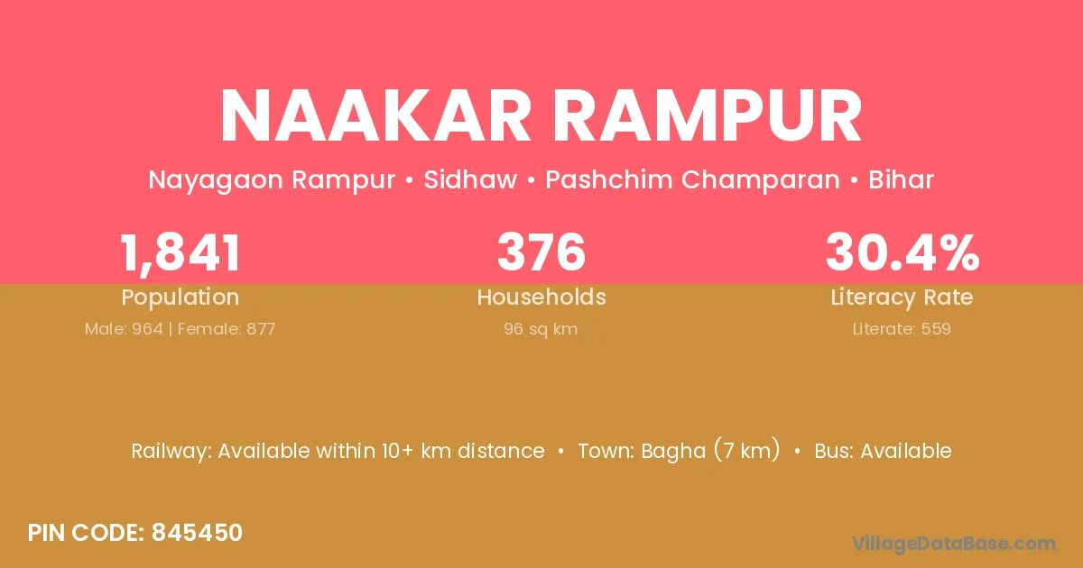 Bagha (7 km) is the nearest town to Naakar Rampur village for major economic activities and is located approximately 7 km away.