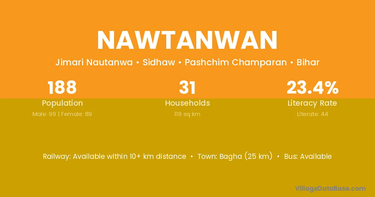 Bagha (25 km) is the nearest town to Nawtanwan village for major economic activities and is located approximately 25 km away.