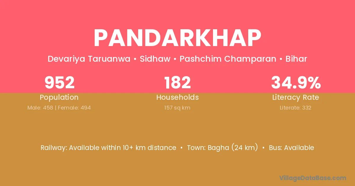 Bagha (24 km) is the nearest town to Pandarkhap village for major economic activities and is located approximately 24 km away.