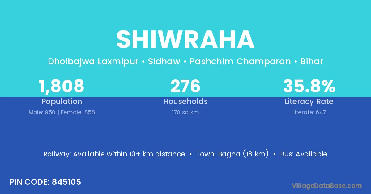 Bagha (18 km) is the nearest town to Shiwraha village for major economic activities and is located approximately 18 km away.