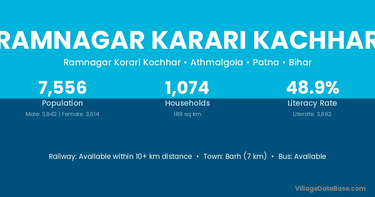Barh (7 km) is the nearest town to Ramnagar Karari Kachhar village for major economic activities and is located approximately 7 km away.