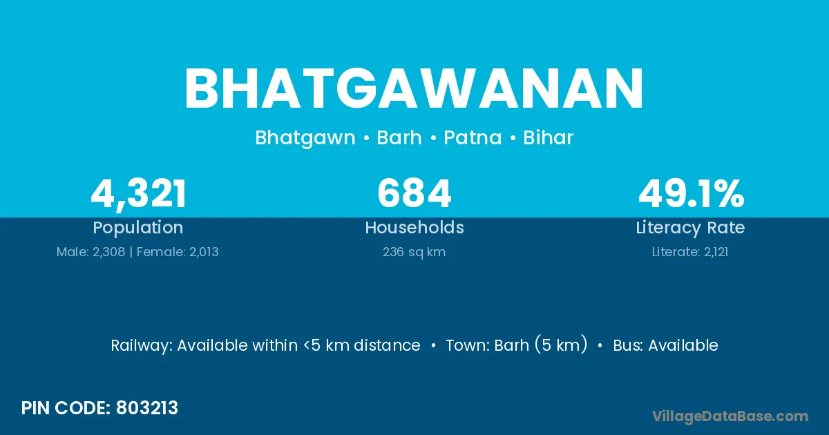 Barh (5 km) is the nearest town to Bhatgawanan village for major economic activities and is located approximately 5 km away.