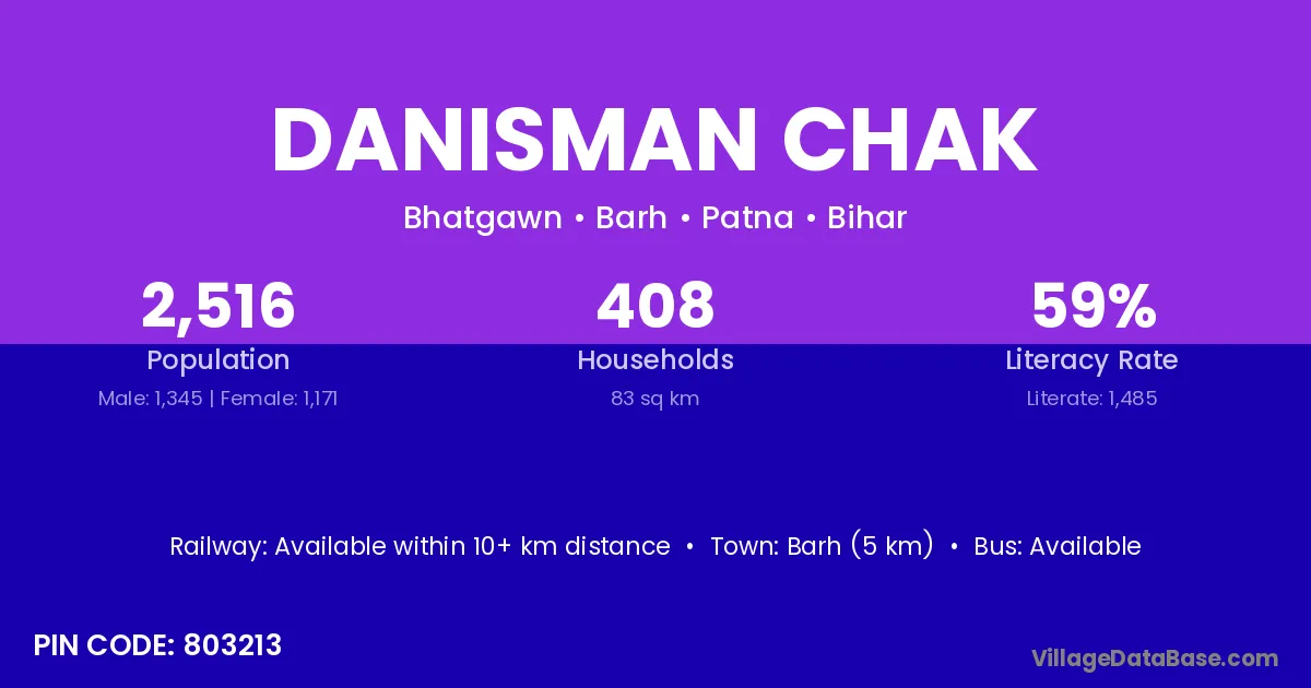 Barh (5 km) is the nearest town to Danisman Chak village for major economic activities and is located approximately 5 km away.