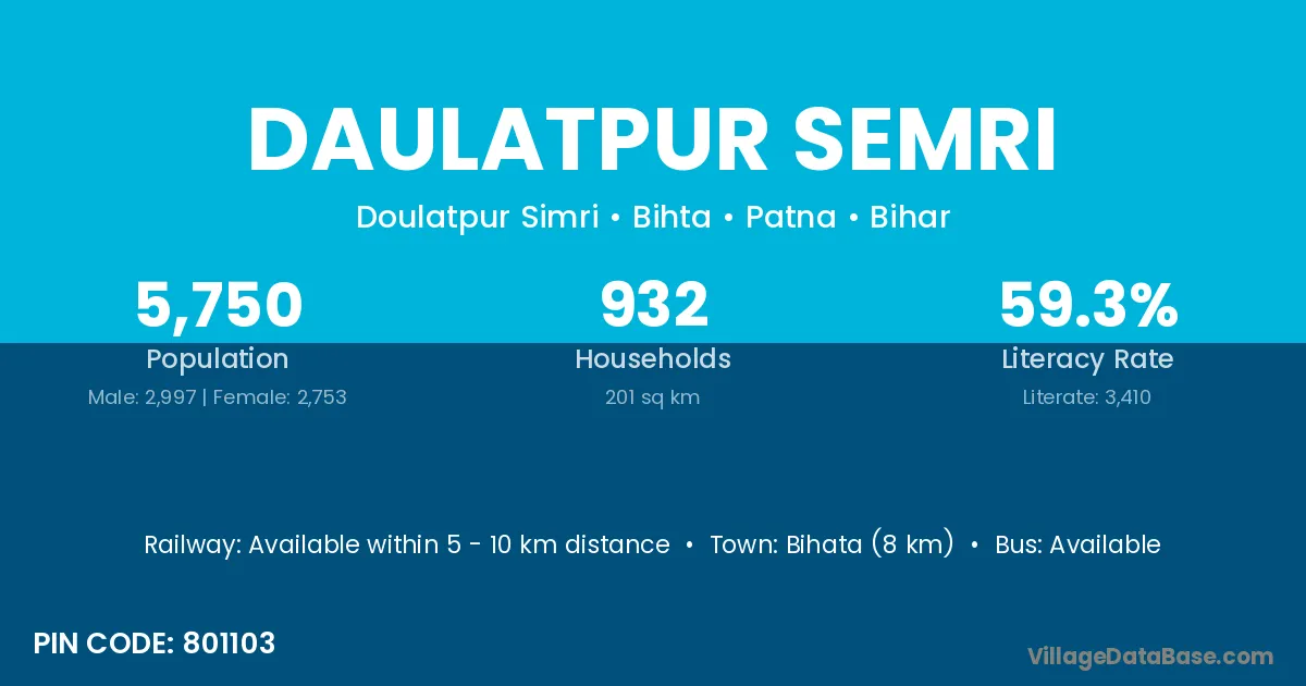 Bihata (8 km) is the nearest town to Daulatpur Semri village for major economic activities and is located approximately 8 km away.