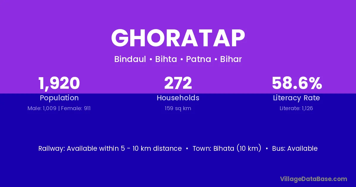 Bihata (10 km) is the nearest town to Ghoratap village for major economic activities and is located approximately 10 km away.