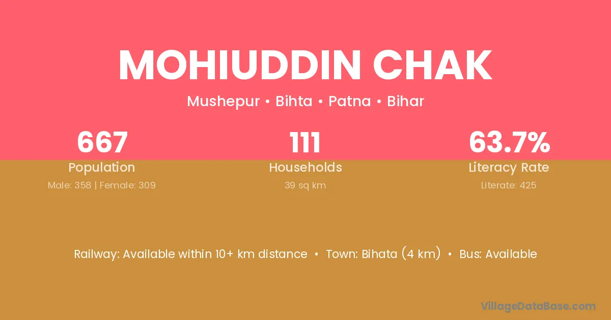 Bihata (4 km) is the nearest town to Mohiuddin Chak village for major economic activities and is located approximately 4 km away.