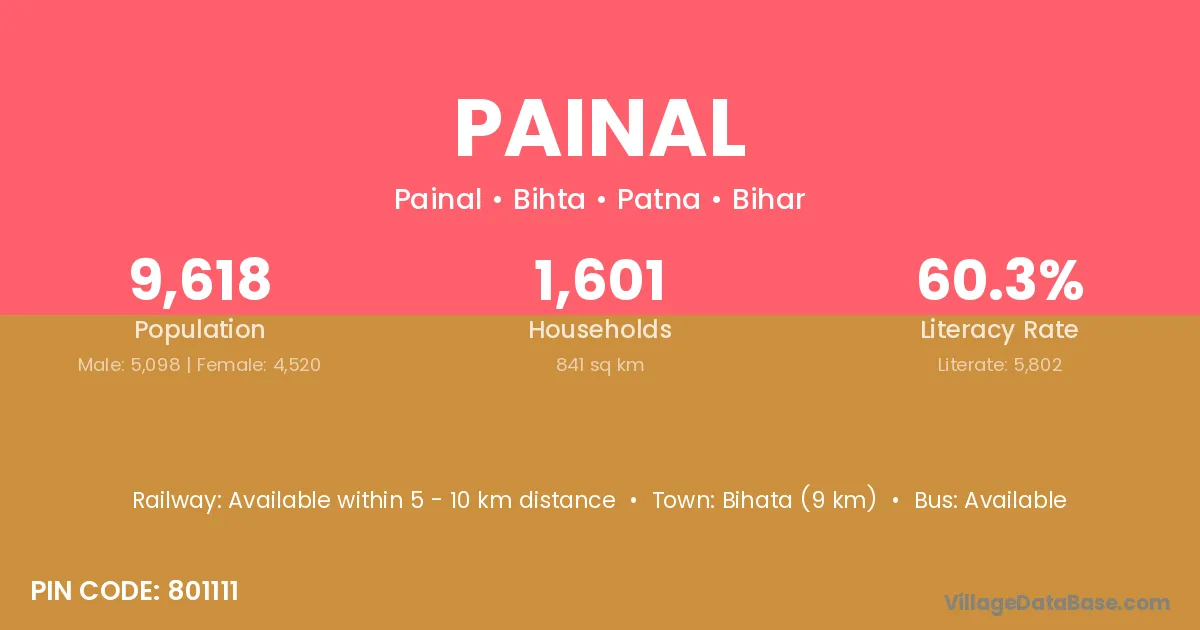 Bihata (9 km) is the nearest town to Painal village for major economic activities and is located approximately 9 km away.