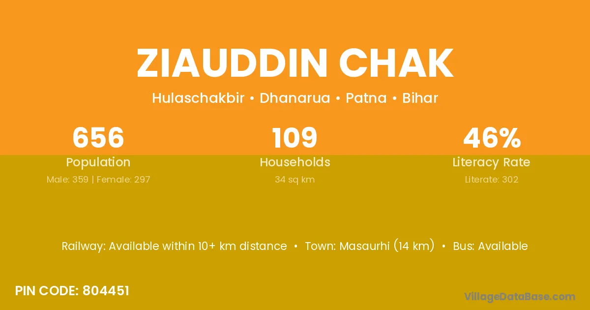 Masaurhi (14 km) is the nearest town to Ziauddin Chak village for major economic activities and is located approximately 14 km away.