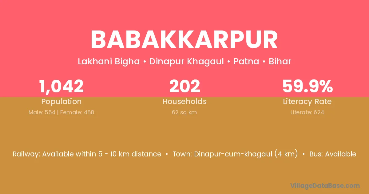 Dinapur-cum-khagaul (4 km) is the nearest town to Babakkarpur village for major economic activities and is located approximately 4 km away.