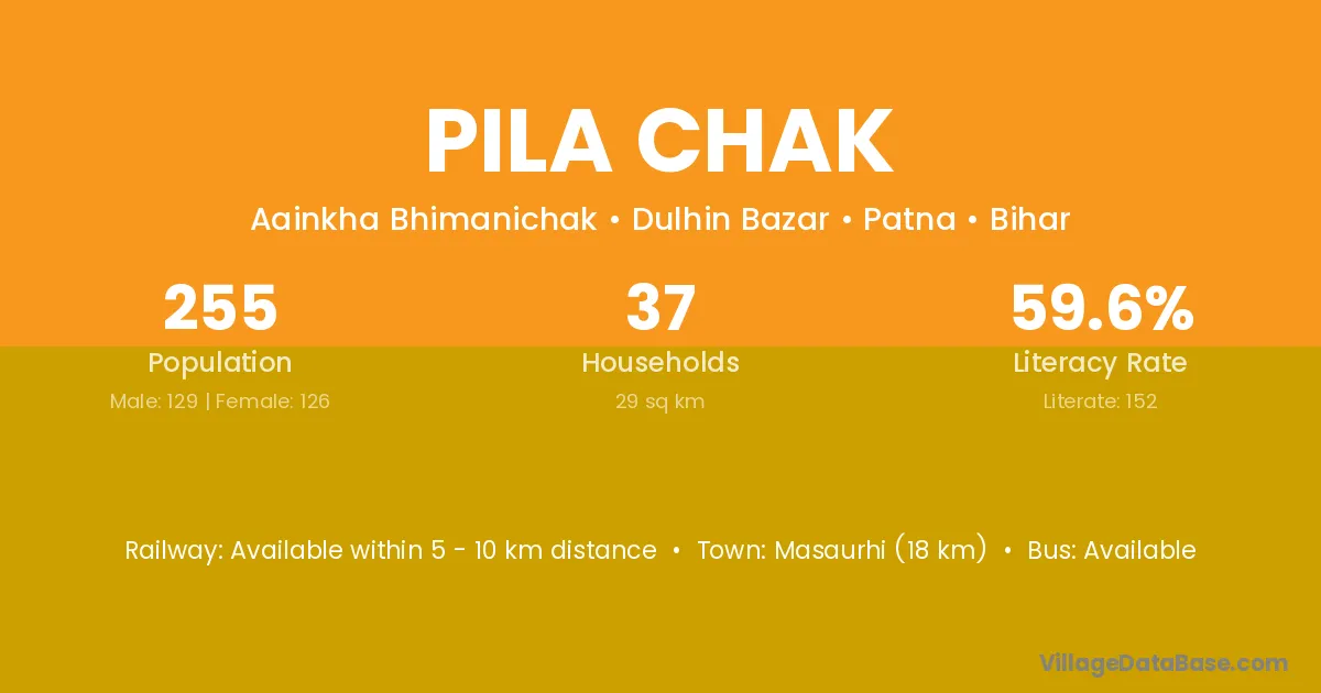 Masaurhi (18 km) is the nearest town to Pila Chak village for major economic activities and is located approximately 18 km away.