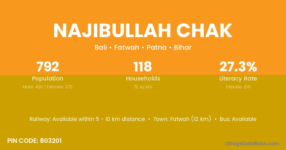 Fatwah (12 km) is the nearest town to Najibullah Chak village for major economic activities and is located approximately 12 km away.