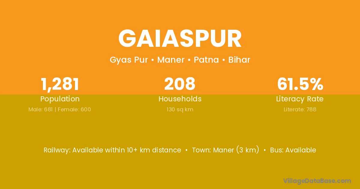 Maner (3 km) is the nearest town to Gaiaspur village for major economic activities and is located approximately 3 km away.