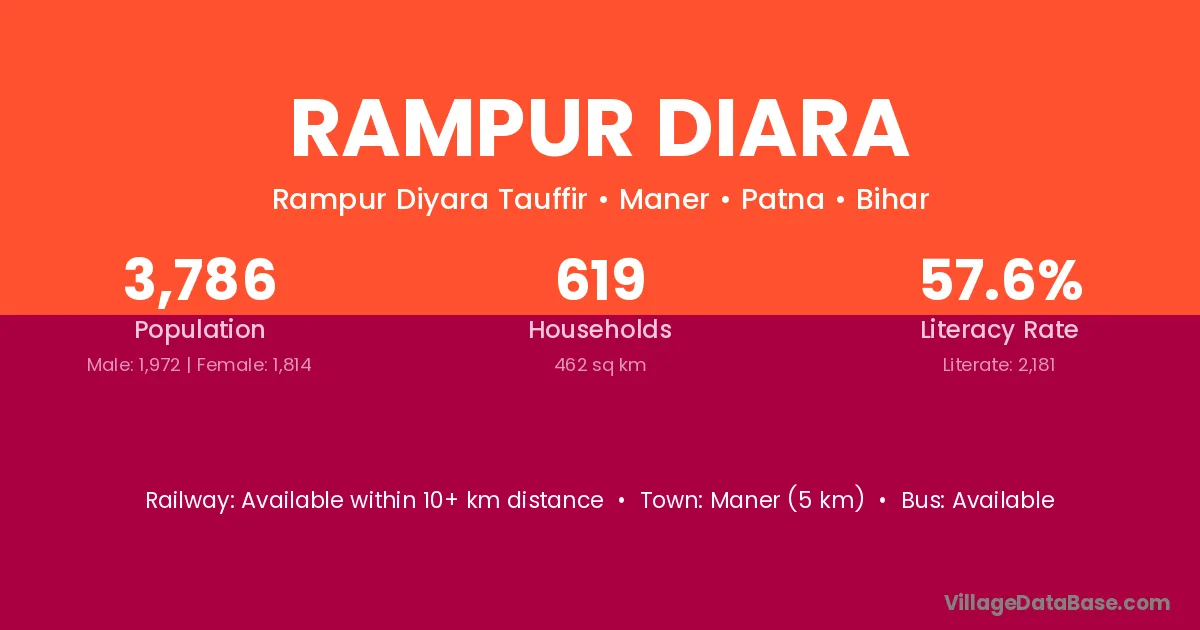 Maner (5 km) is the nearest town to Rampur Diara village for major economic activities and is located approximately 5 km away.