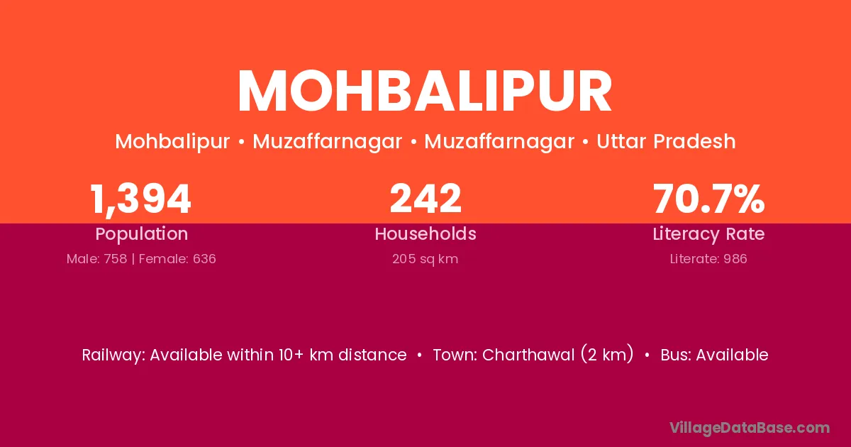 There are approximately 1,251 households in Mohbalipur village.