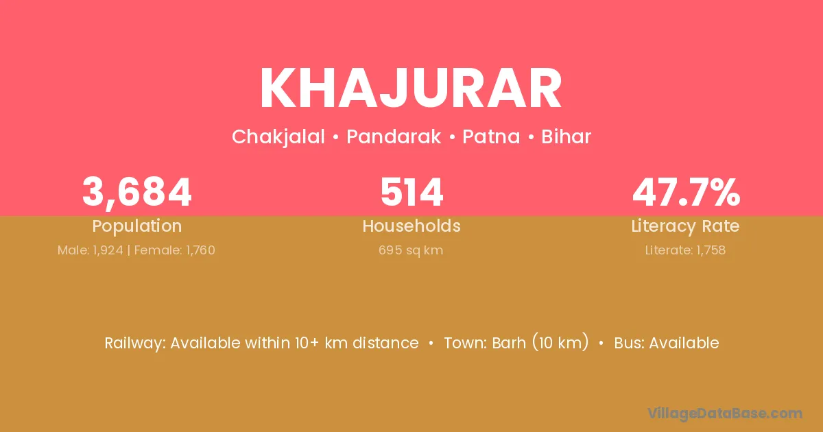 Barh (10 km) is the nearest town to Khajurar village for major economic activities and is located approximately 10 km away.