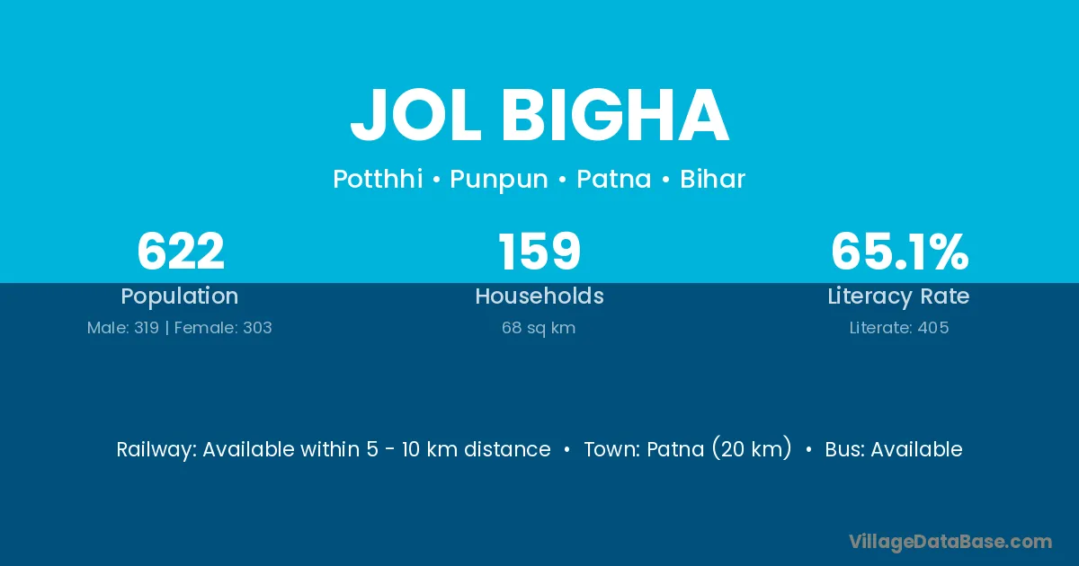 Jol Bigha village has a total population of 622 people, of which 319 are males and 303 are females.