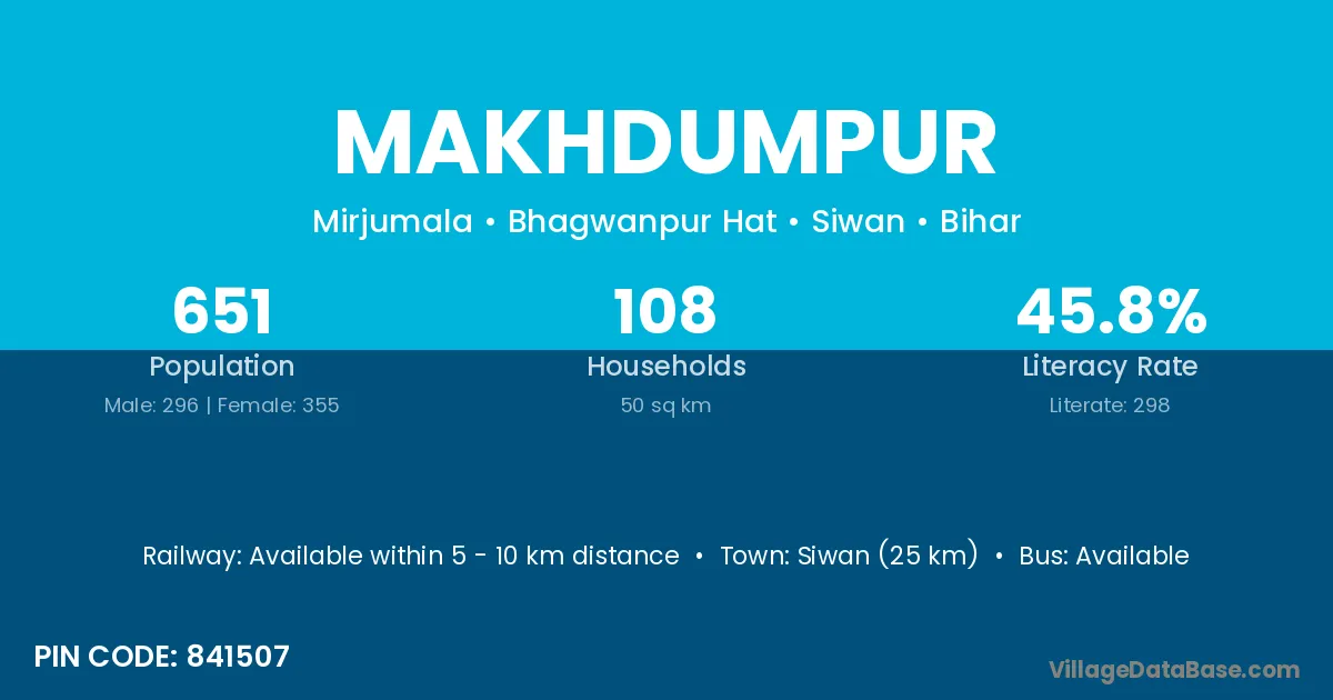 Patna (28 km) is the nearest town to Makhdumpur village for major economic activities and is located approximately 28 km away.