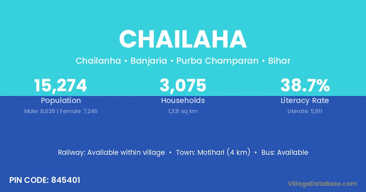 Motihari (4 km) is the nearest town to Chailaha village for major economic activities and is located approximately 4 km away.