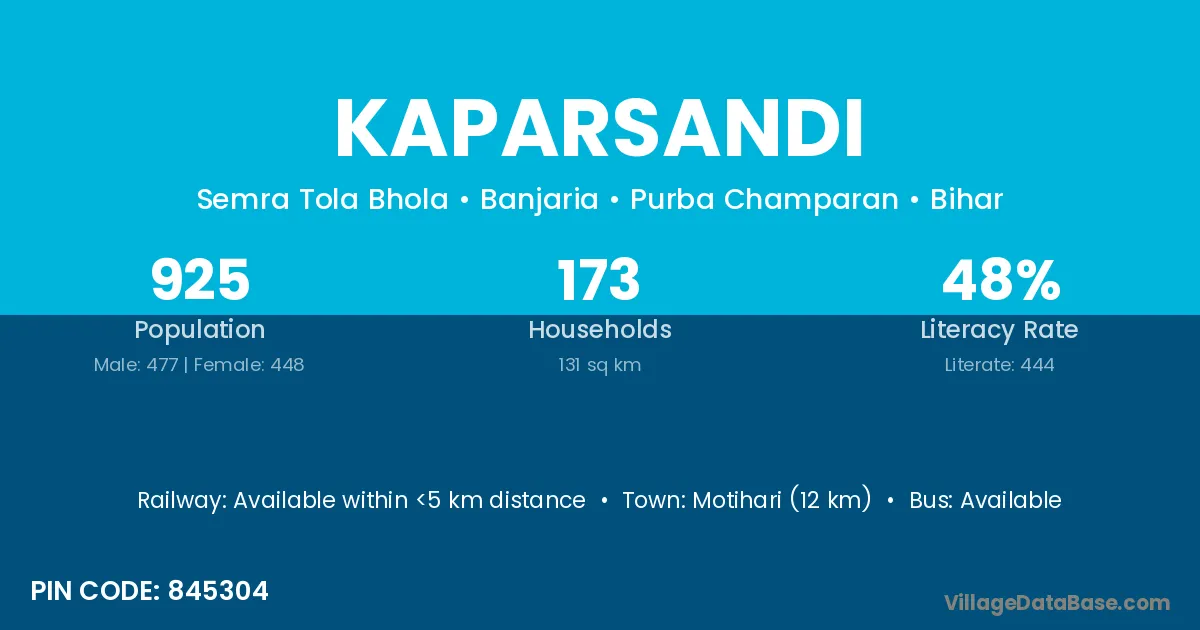 Motihari (12 km) is the nearest town to Kaparsandi village for major economic activities and is located approximately 12 km away.